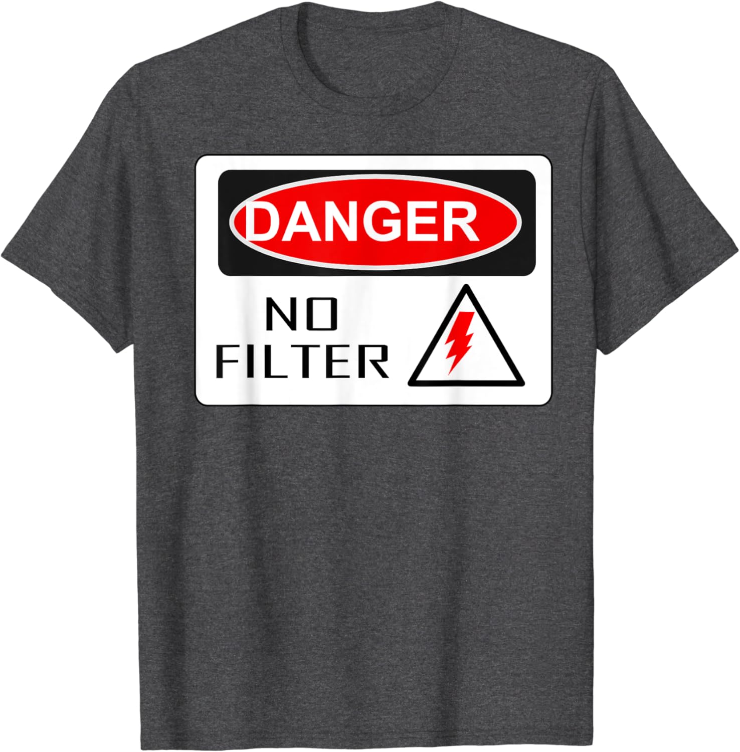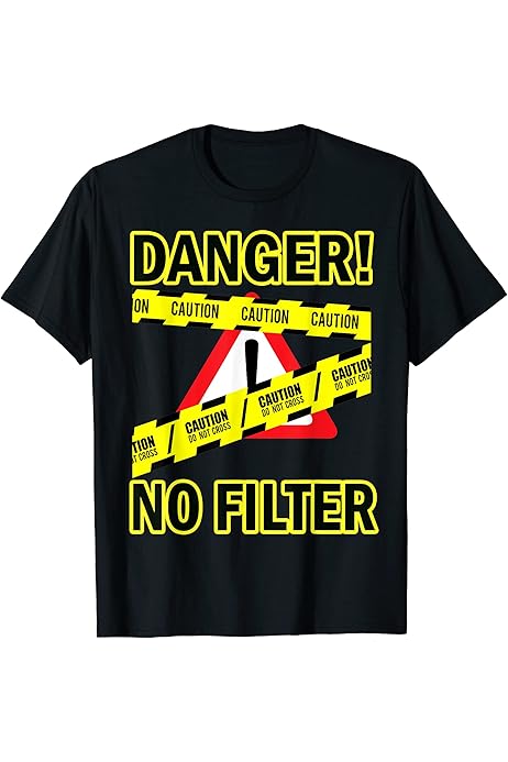 Amazon Com Danger No Filter Funny Sign Big Mouth Pun Quote T Shirt Clothing Shoes Jewelry